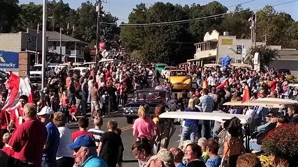 parade line-up starts at noon, judging at 1:30, Parade at 2 PM
